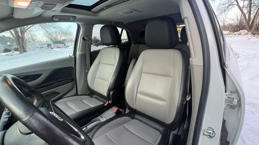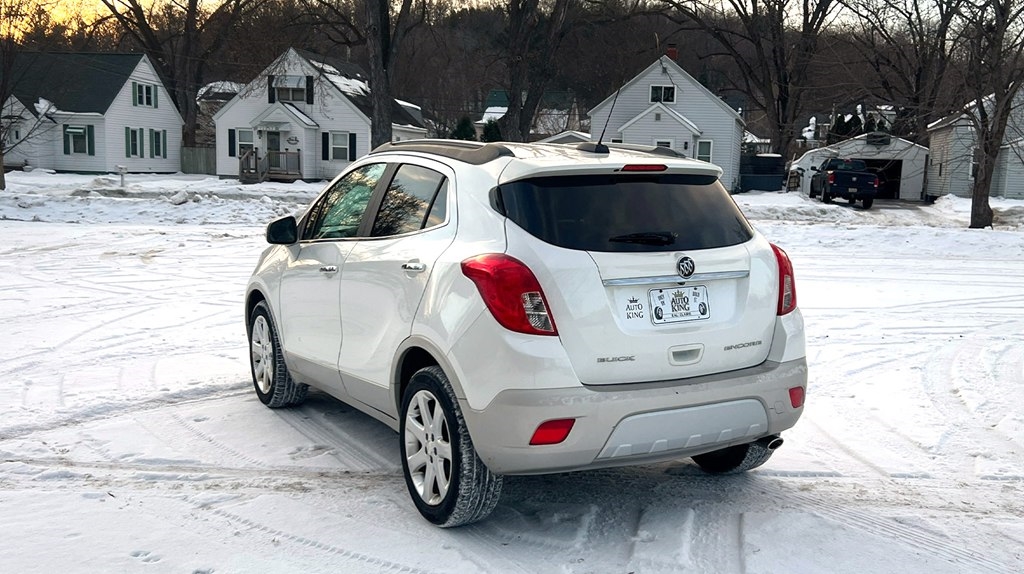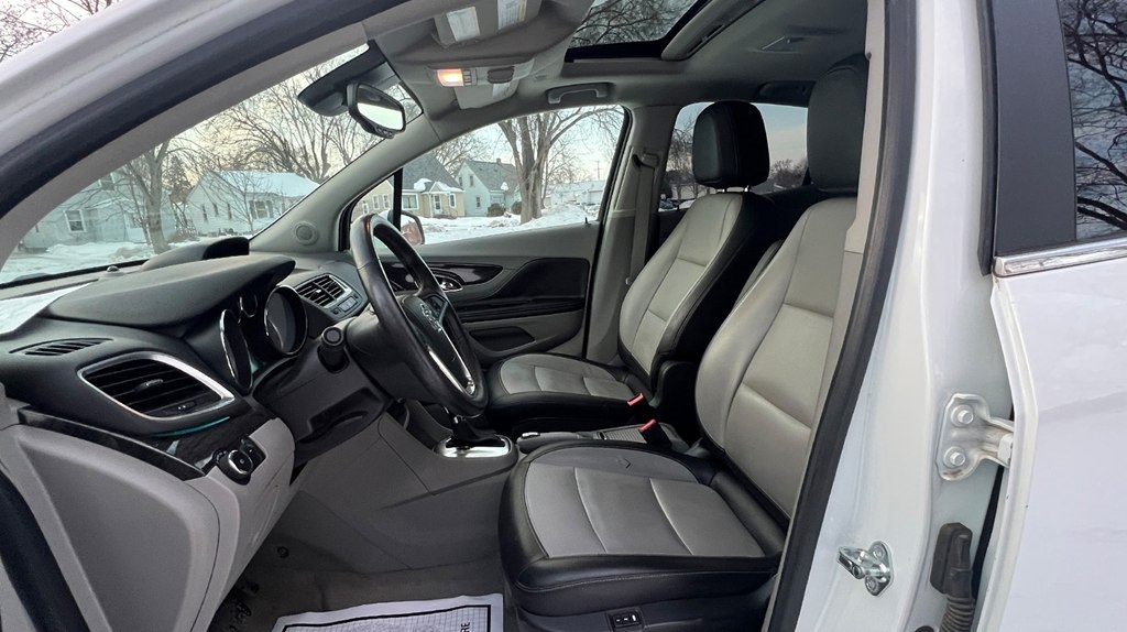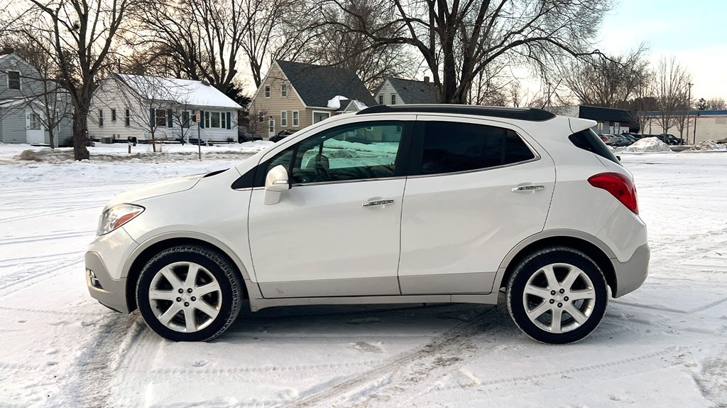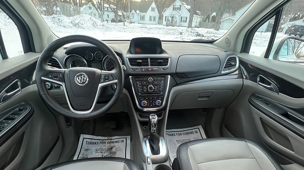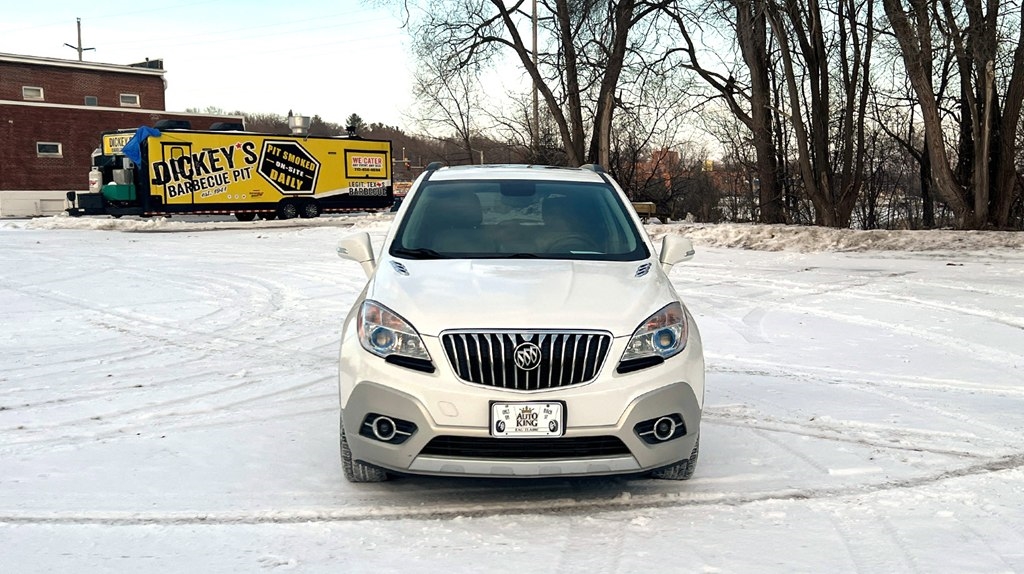 Jump into this sleek white 2015 Buick Encore and get ready to cruise in style! With a Carfax report available, you can purchase with confidence knowing the history of this beauty. This compact SUV is perfect for zipping around town or hitting the open road, thanks to its efficient fuel economy and smooth handling. The spacious interior provides ample room for passengers and cargo, making it ideal for road trips or running errands. Equipped with {featureList}, this Buick Encore ensures a comfortable and convenient driving experience. So crank up your favorite tunes on the sound system, activate the rearview camera for easy parking, and enjoy the ride in this reliable and stylish vehicle. Don't miss out on the opportunity to own this reliable and stylish vehicle, so come on in and take it for a test drive today!